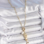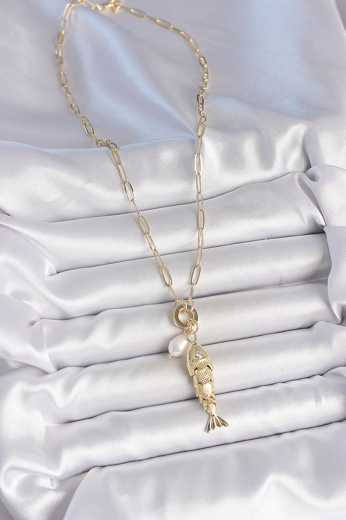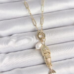 İnci Detaylı Zirkon Taşlı Balık Figürlü Gold Renk Pirinç Kolye