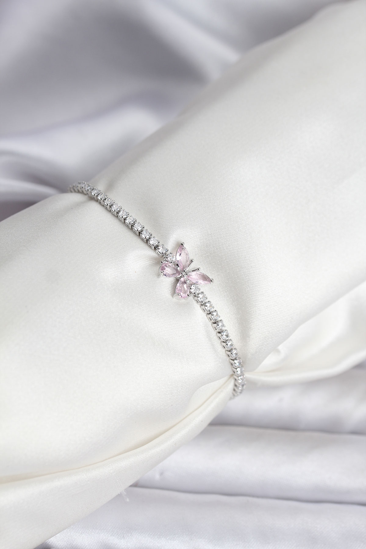 Kelebek Model Zirkon Taşlı Gümüş Renk Pirinç Su Yolu Kadın Bileklik