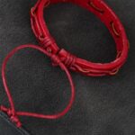 Kombinlerinizde Kırmızı Renk İpli Yeni Sezon Deri Erkek Bileklik modeline yer açın.