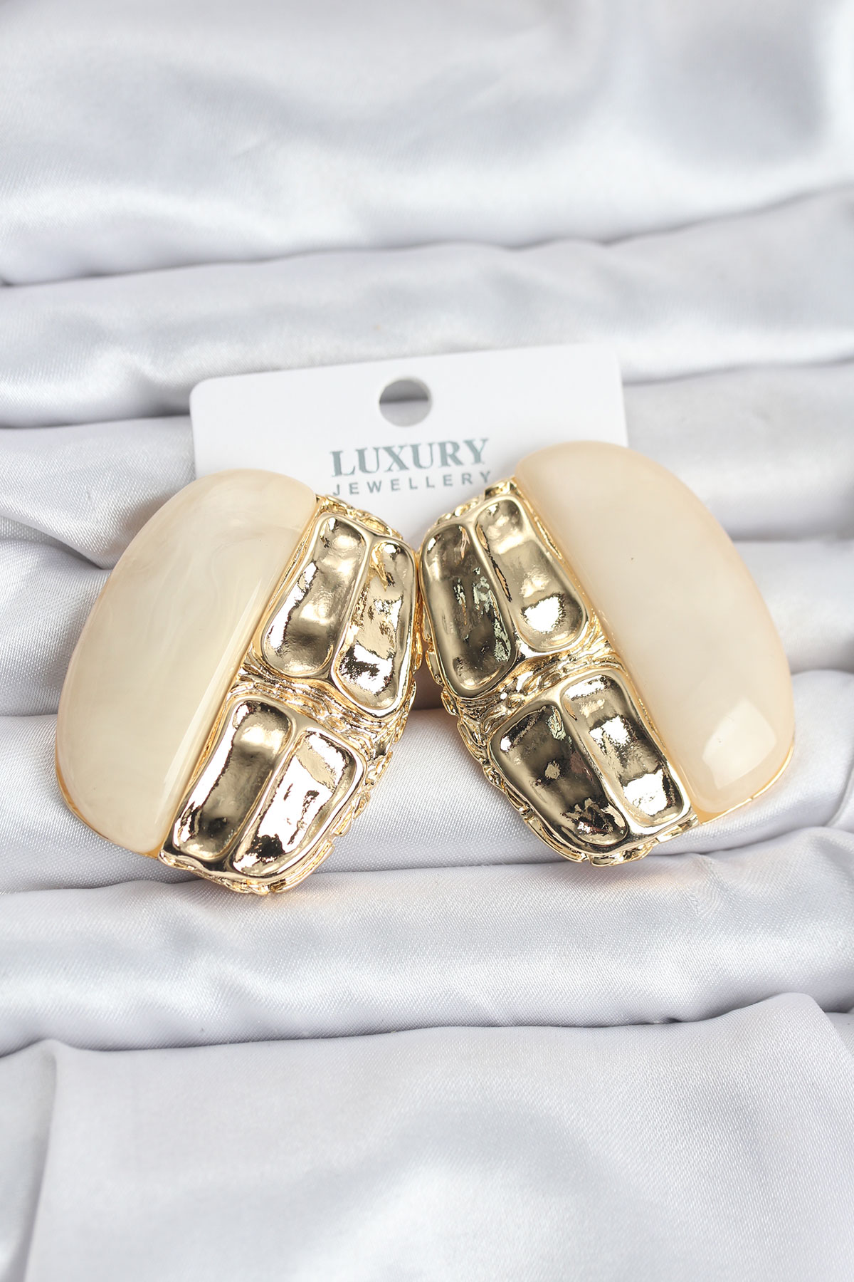 Krem Renk Pirinç Vintage Kadın Küpe