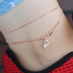 Kristal Taşlı Rose Renk Çift Zincirli Hal Hal