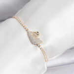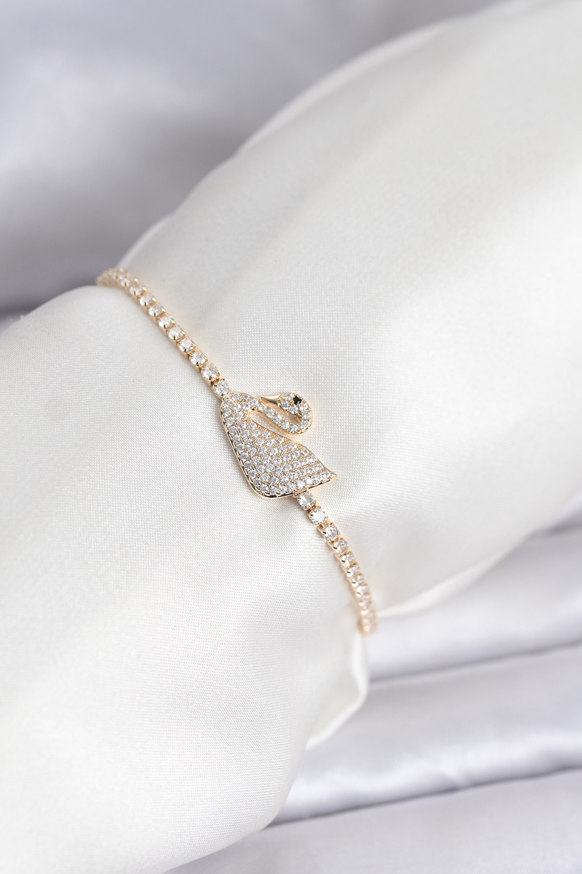 Kuğu Model Zirkon Taşlı Gold Renk Asansörlü Su Yolu Bileklik