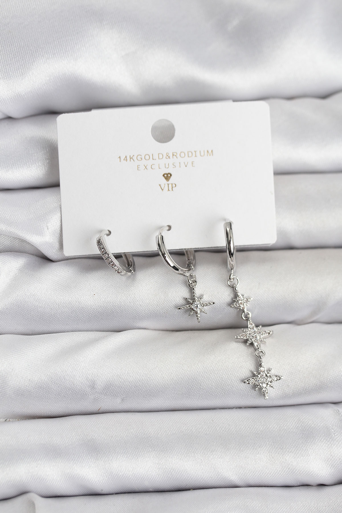 Kutup Yıldızı Model Gümüş Renk Pirinç 3’lü Kadın Küpe Seti