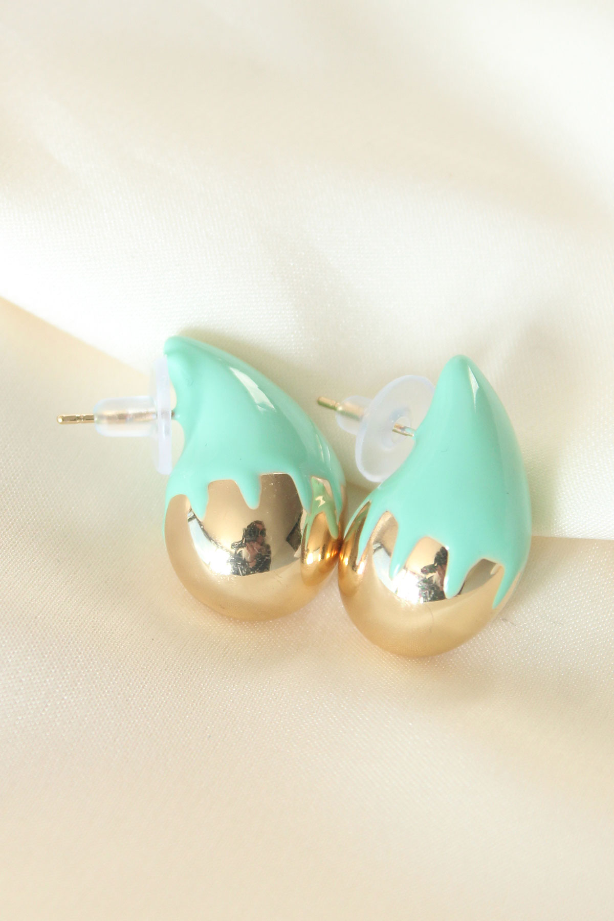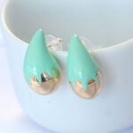 Minimal Turkuaz Mineli Çift Renk Damla Küpe