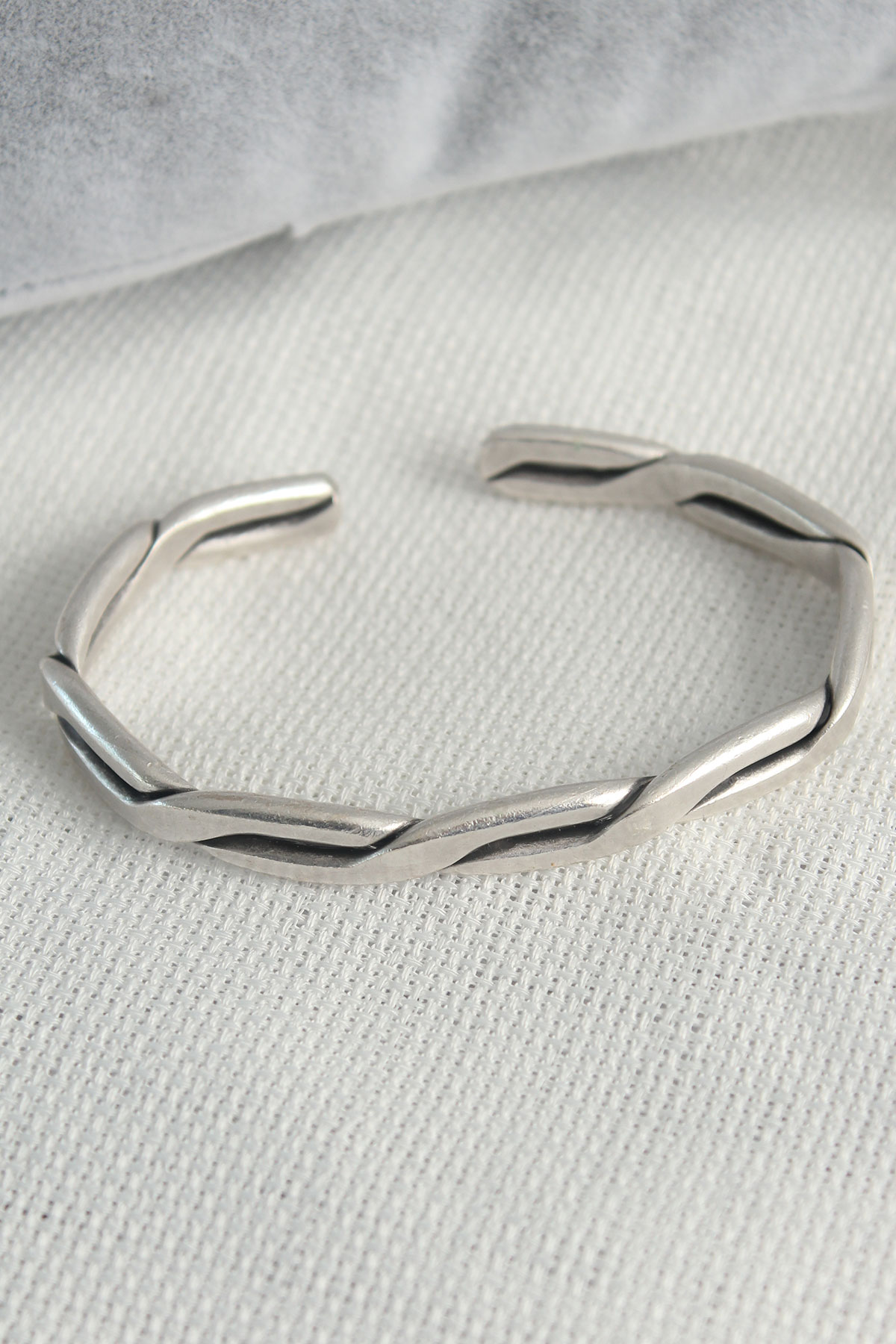 Otantik Gümüş Renk Motif İşleme Plaka Erkek Bileklik