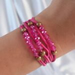 Pembe Renk Zirkon Taşlı İpli Çoklu Bileklik