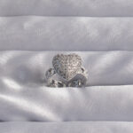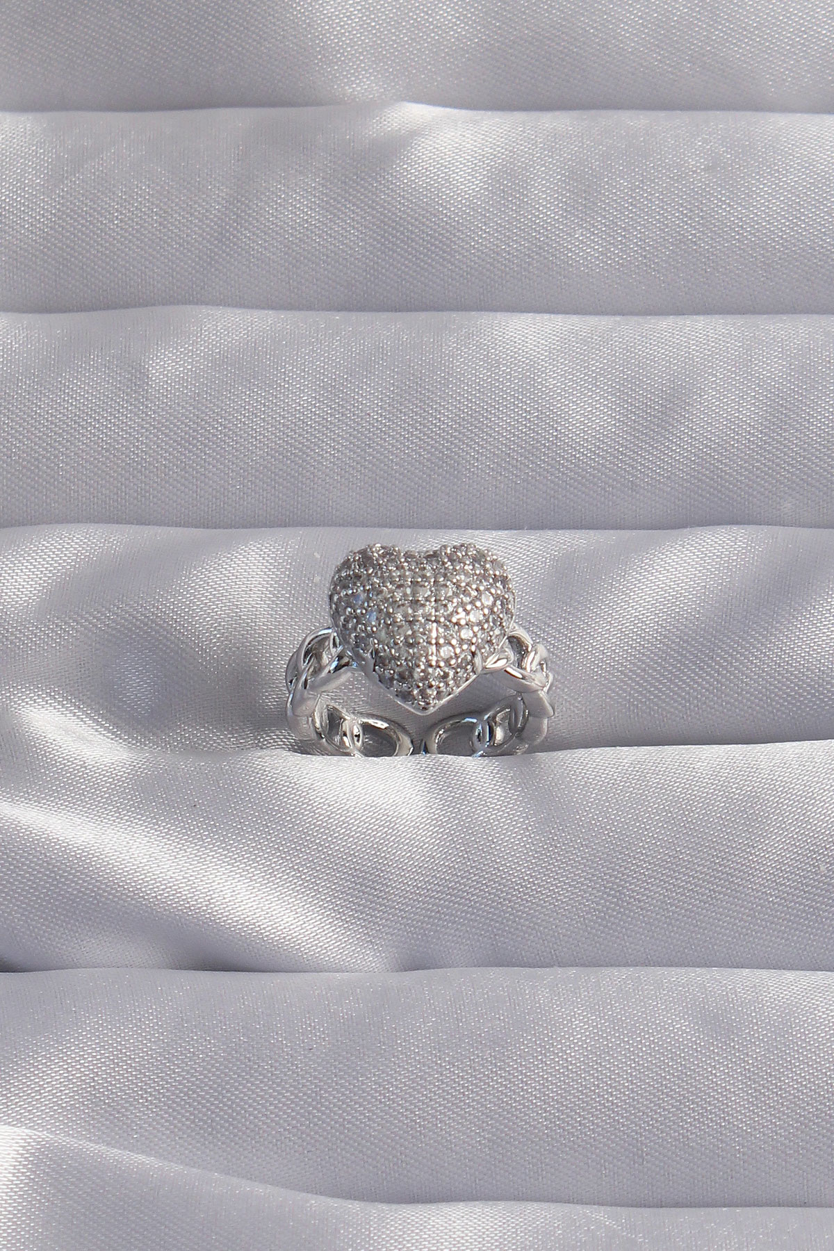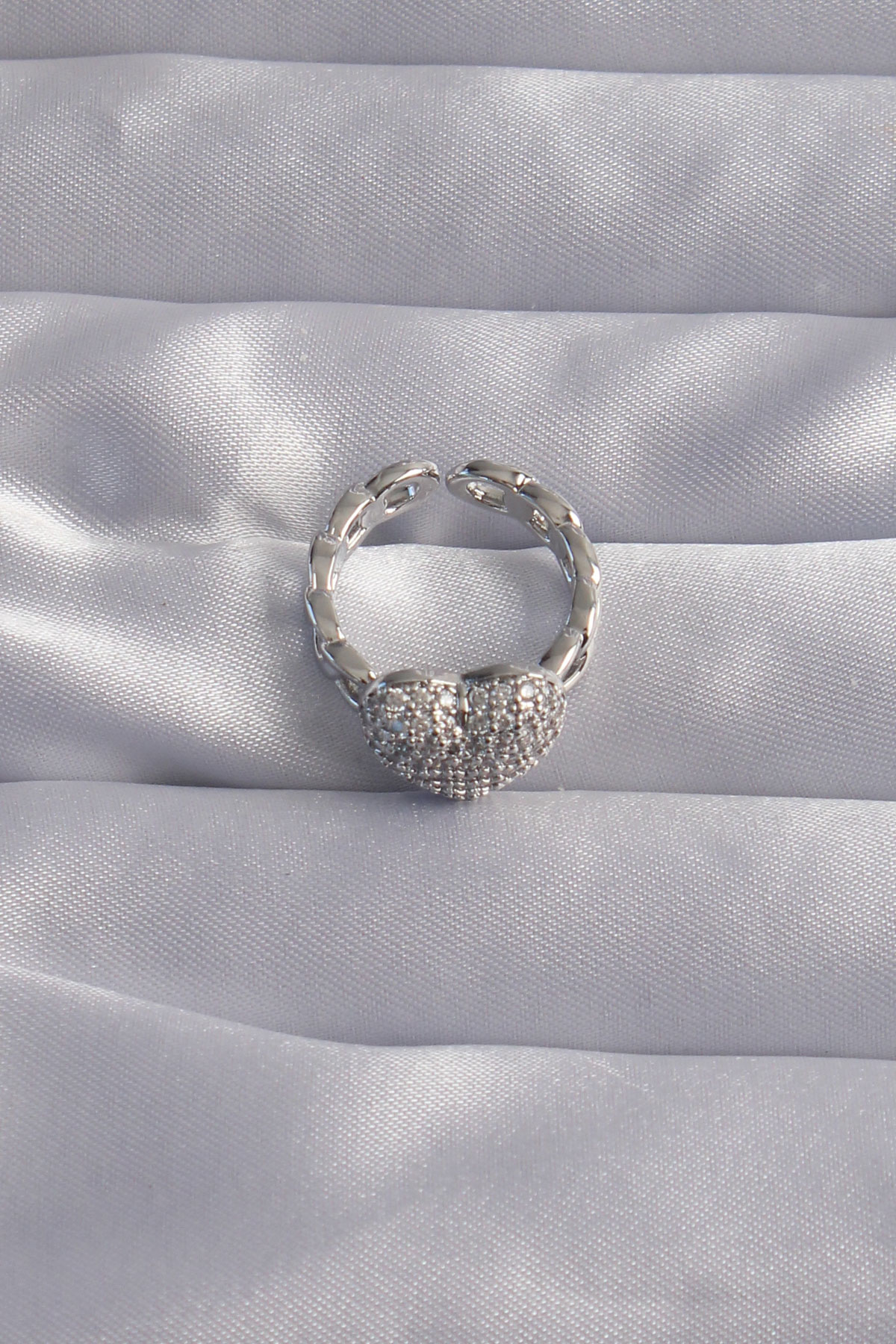 Pirinç Ayarlamalı Gümüş Renk Zirkon Taşlı Bombeli Kalp Yüzük
