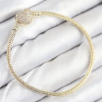 Pirinç Charm Zirkon Taşlı Kalp Model Gold Renk Kadın Bileklik