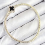 Pirinç Charm Zirkon Taşlı Yonca Model Gold Renk Kadın Bileklik