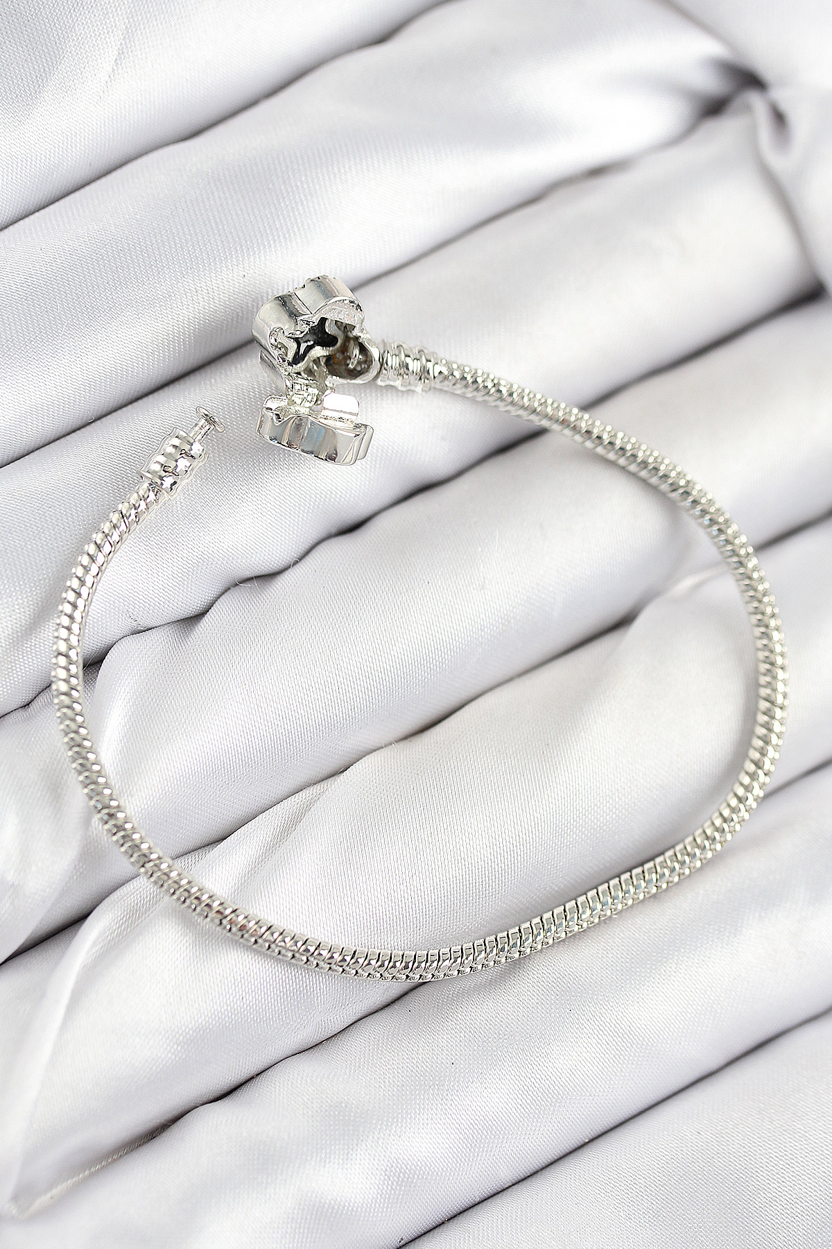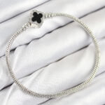 Pirinç Charm Zirkon Taşlı Yonca Model Gümüş Renk Kadın Bileklik