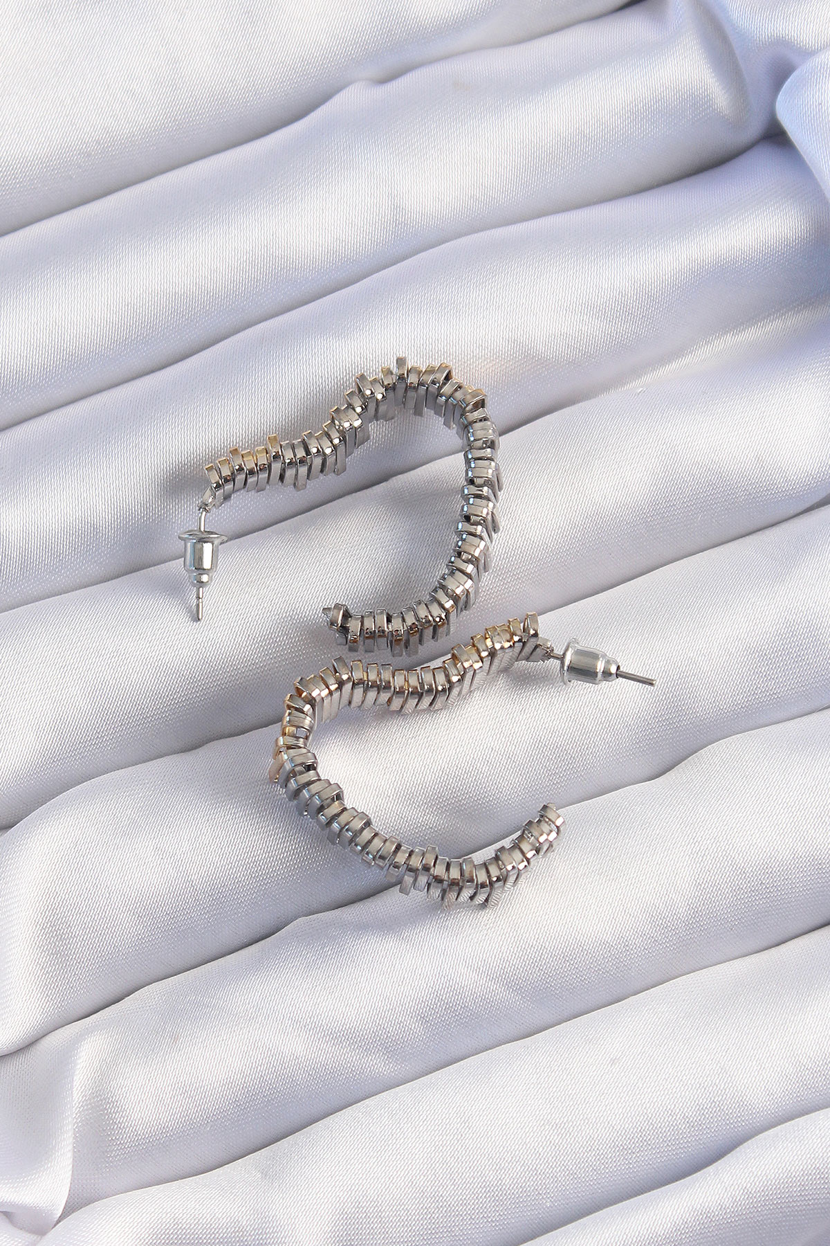 Pirinç Gold Gümüş Renkli Tırtıklı Kalp Küpe
