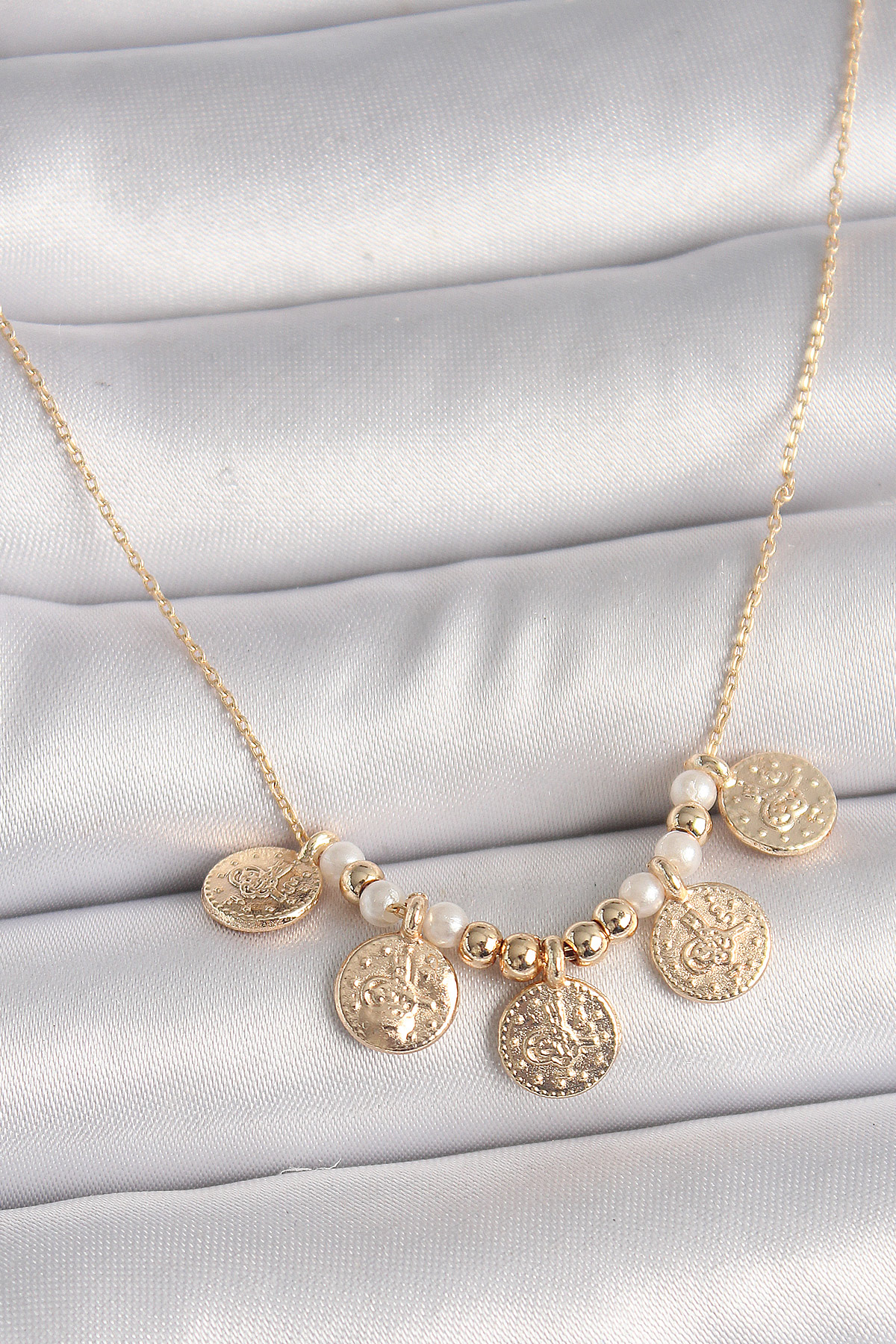 Pirinç Gold Renk 5’Li Osmanlı Tuğra Figür İnci Detay Kadın Kolye