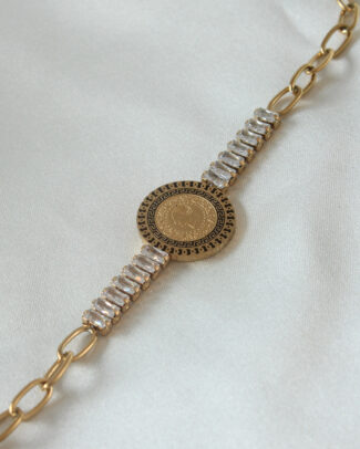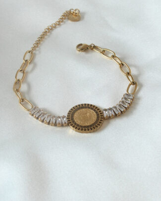 Pirinç Gold Renk Balık Sırtı Model Zirkon Taşlı Kadın Bileklik