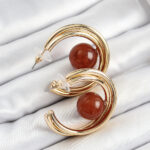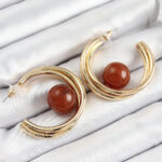 Pirinç Gold Renk Halka Model Kahverengi Boncuk Detay Kadın Küpe