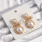 Pirinç Gold Renk İnci Taşlı Motifli Küpe