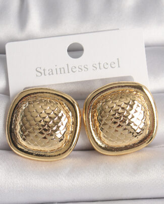 Pirinç Gold Renk İşlemeli Kare Model Kadın Küpe