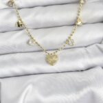 Pirinç Gold Renk Kalp Model Kadın Kolye