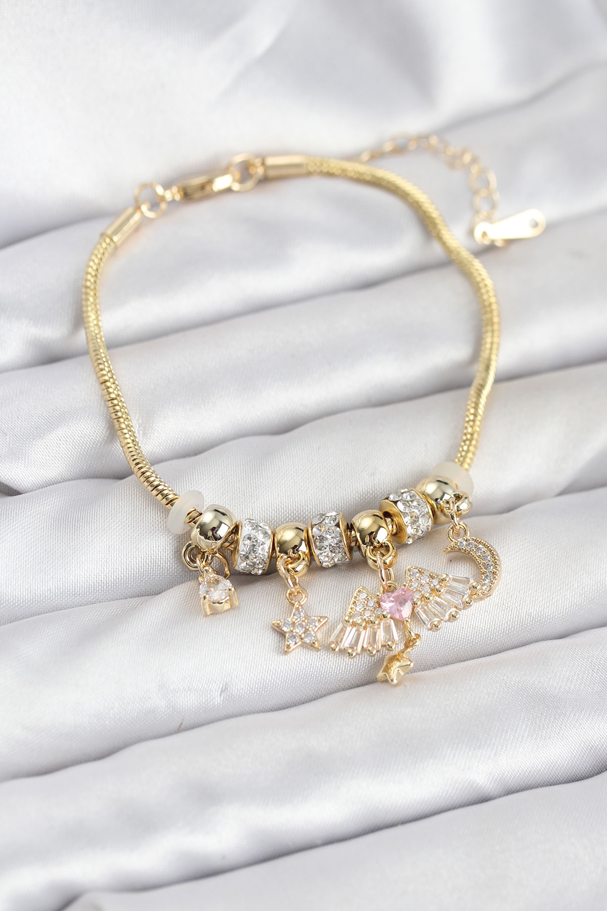 Pirinç Gold Renk Kanatlı Charmlı Kadın Bileklik