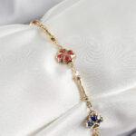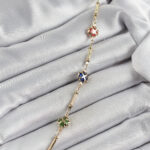 Pirinç Gold Renk Karışık Renk Yonca Zirkon Taşlı Kadın Bileklik