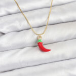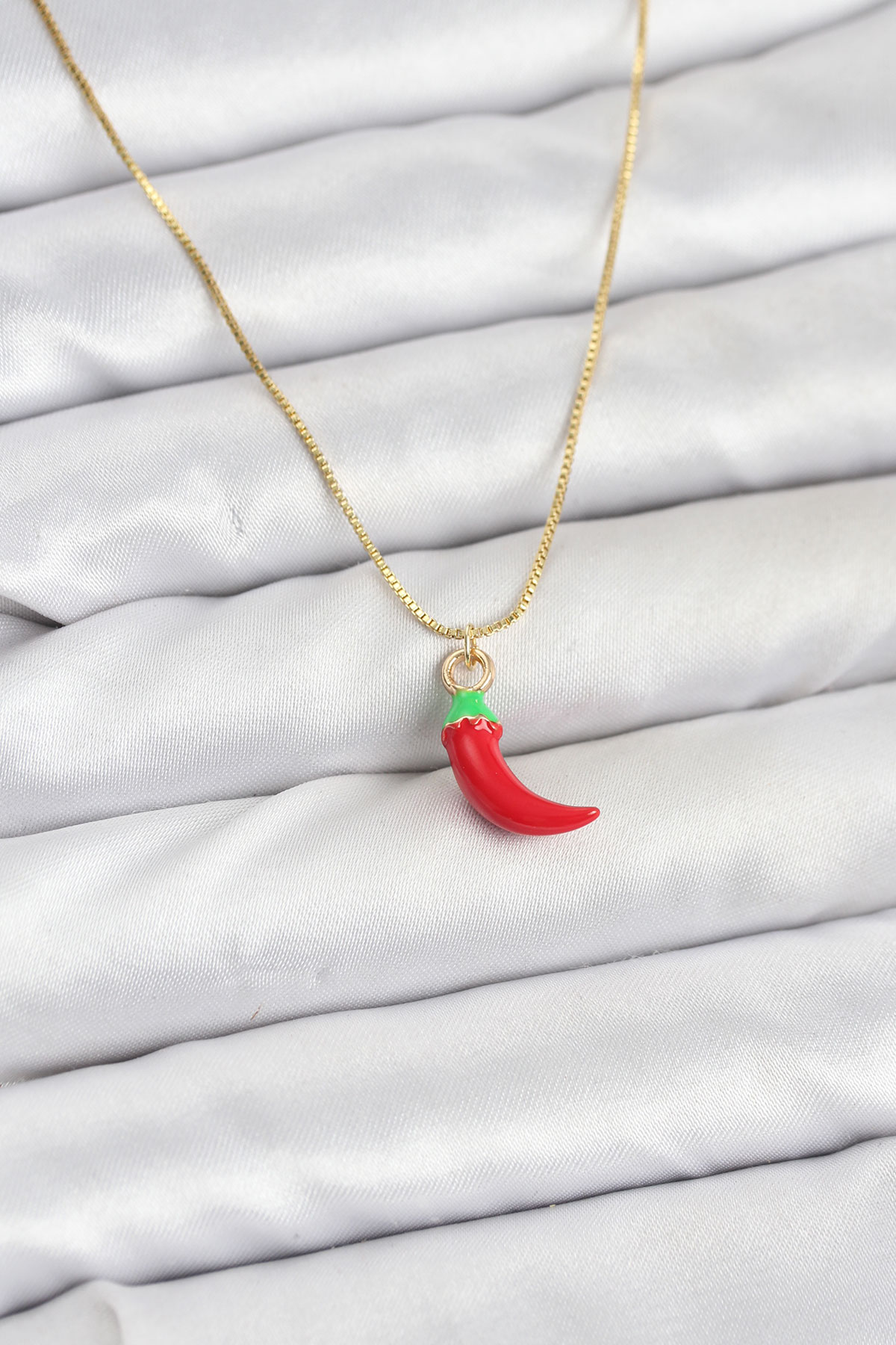 Pirinç Gold Renk Kırmızı Kapya Biber Model Kadın Kolye
