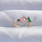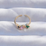 Pirinç Gold Renk Renkli Zirkon Taşlı Ayarlanabilir Yüzük