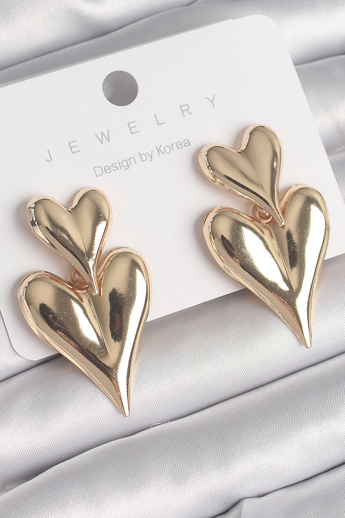 Pirinç Gold Renk Sallantı Kalp Model Kadın Küpe