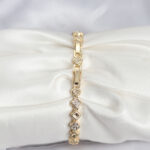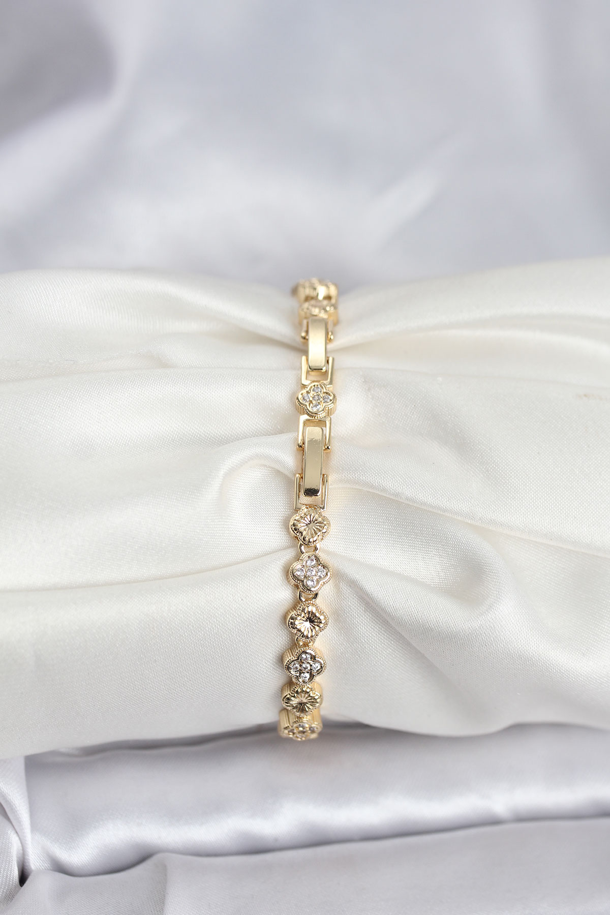 Pirinç Gold Renk VIP Seri Sıralı Yonca Model Zirkon Taşlı Kadın Bileklik