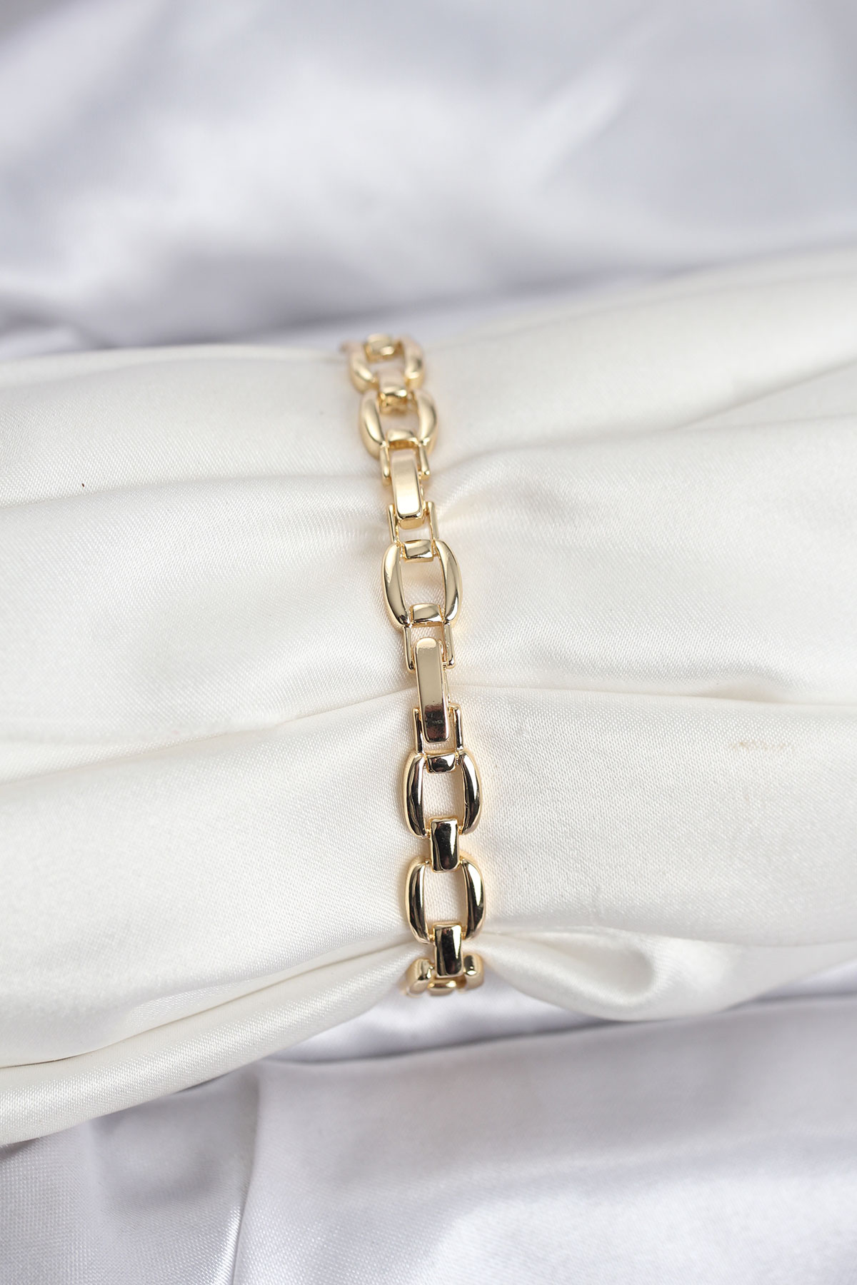 Pirinç Gold Renk VIP Seri Zincir Model Zirkon Taşlı Kadın Bileklik