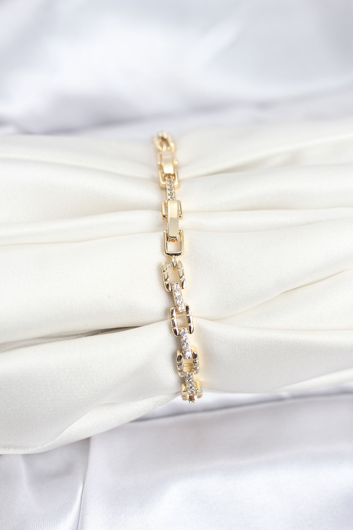 Pirinç Gold Renk VIP Seri Zincir Model Zirkon Taşlı Kadın Bileklik