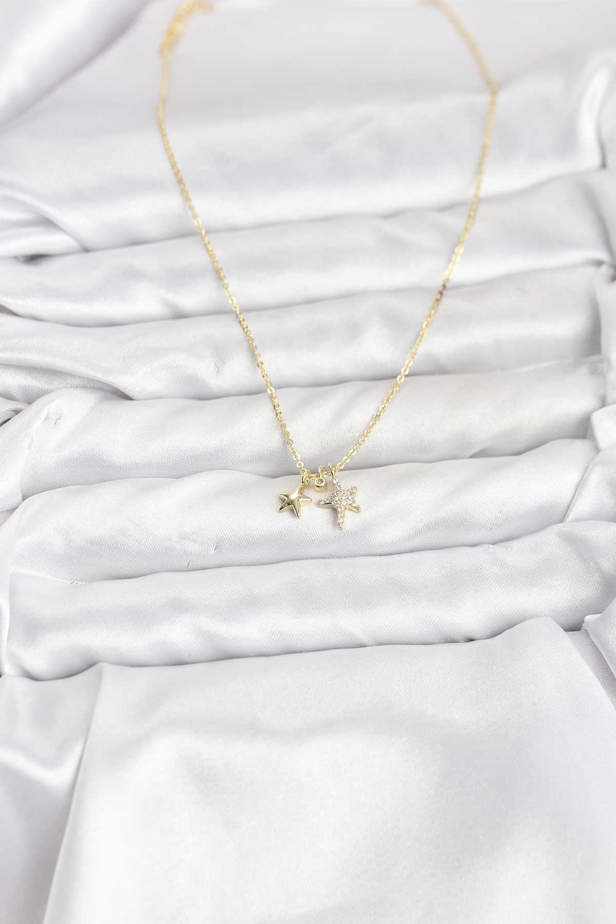 Pirinç Gold Renk Yıldız Minimal Kadın Kolye