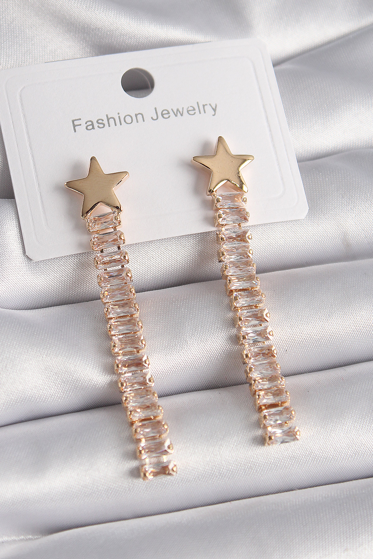 Pirinç Gold Renk Yıldız Model Su Yolu Zirkon Taşlı Kadın Küpe