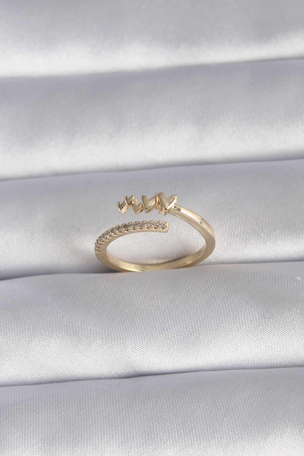 Pirinç Gold Renk Zirkon Taş Detay Kalp Model Kadın Yüzük
