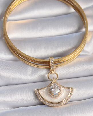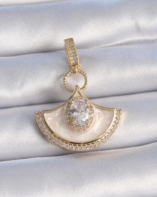 Pirinç Gold Renk Zirkon Taş Detaylı Beyaz Mineli Ajda Charm