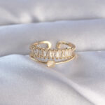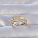 Pirinç Gold Renk Zirkon Taşlı Baget Su Yolu Model Ayarlanabilir Yüzük