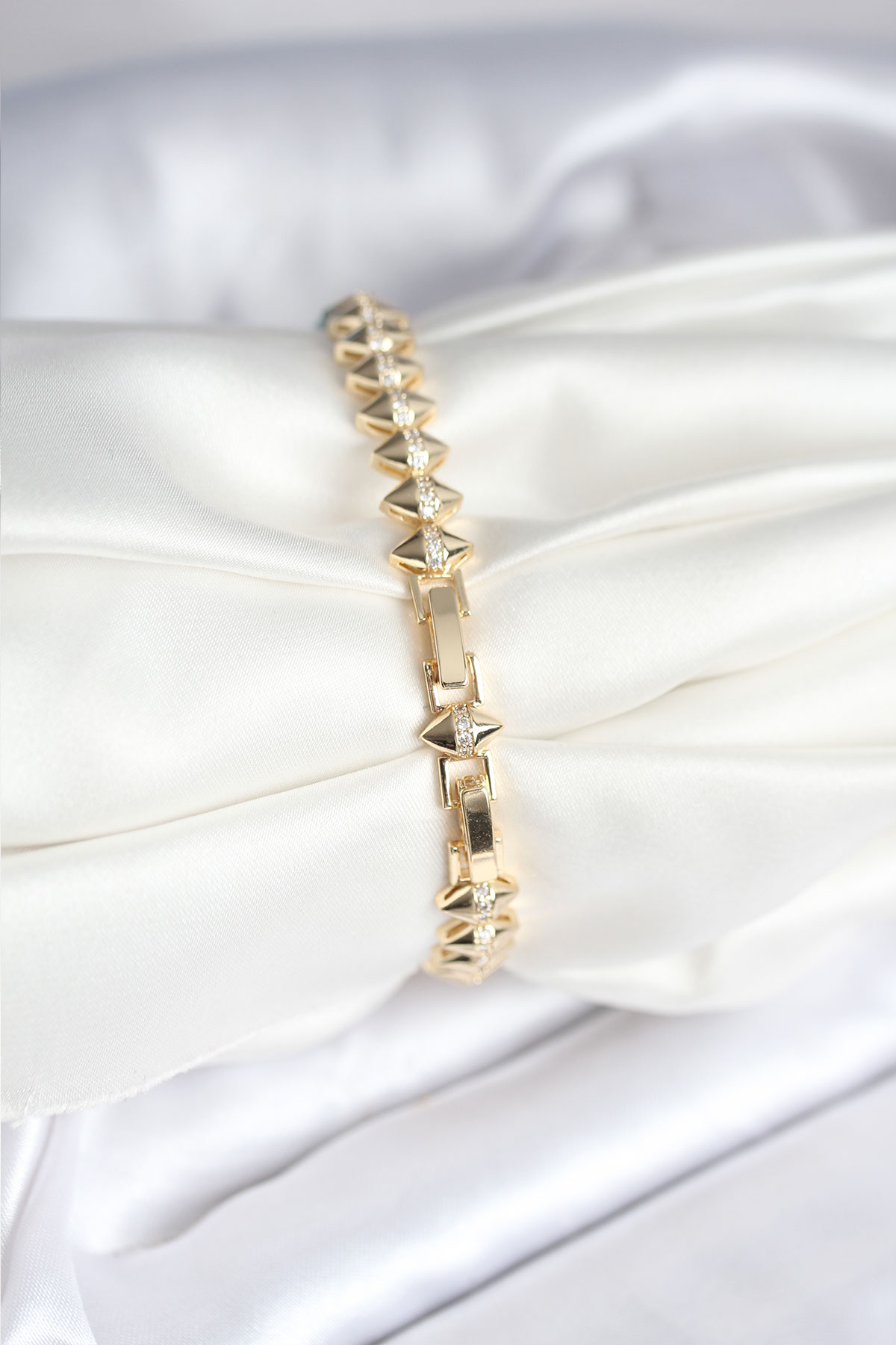 Pirinç Gold Renk Zirkon Taşlı Baklava Model Kadın Bileklik