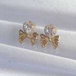 Pirinç Gold Renk Zirkon Taşlı Kalp Model Fiyonk Küpe