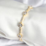 Pirinç Gold Renk Zirkon Taşlı Kalpli Model Kadın Bileklik