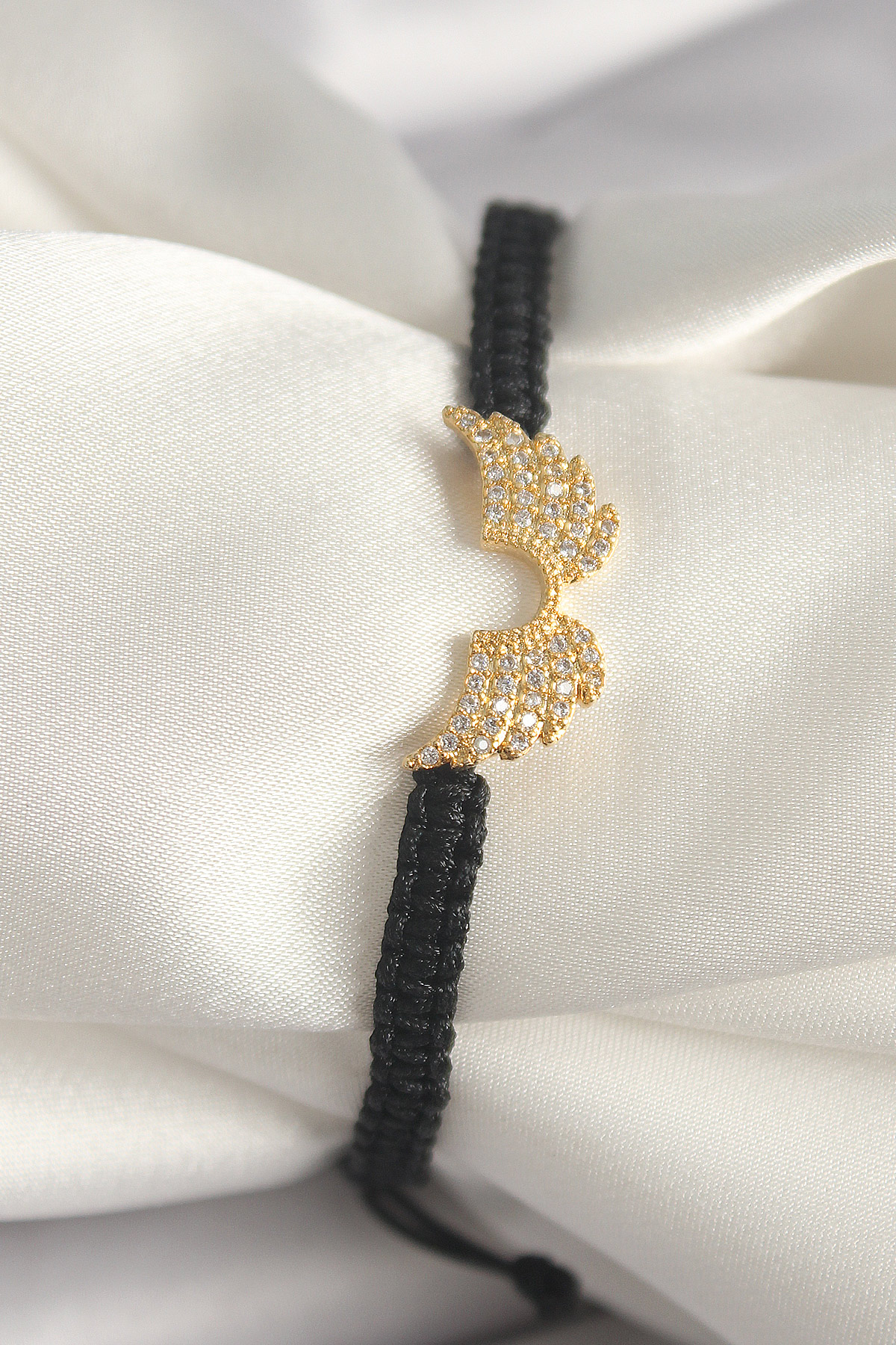 Pirinç Gold Renk Zirkon Taşlı Kanat Figür Asansörlü Makrome Model Kadın Bileklik