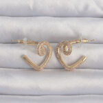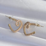 Pirinç Gold Renk Zirkon Taşlı Kıvrımlı Yarım Kalp Küpe