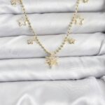Pirinç Gold Renk Zirkon Taşlı Kutup Yıldızı Model Kadın Kolye