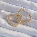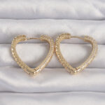 Pirinç Gold Renk Zirkon Taşlı Motifli Kalp Küpe