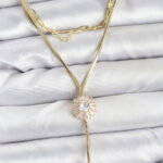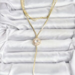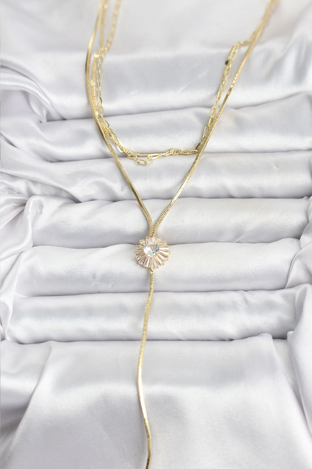 Pirinç Gold Renk Zirkon Taşlı Papatya Model Detaylı 3’lü Kombin Y Kadın Kolye