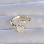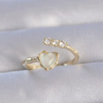Pirinç Gold Renk Zirkon Taşlı Sedefli Kalp Model Ayarlanabilir Yüzük