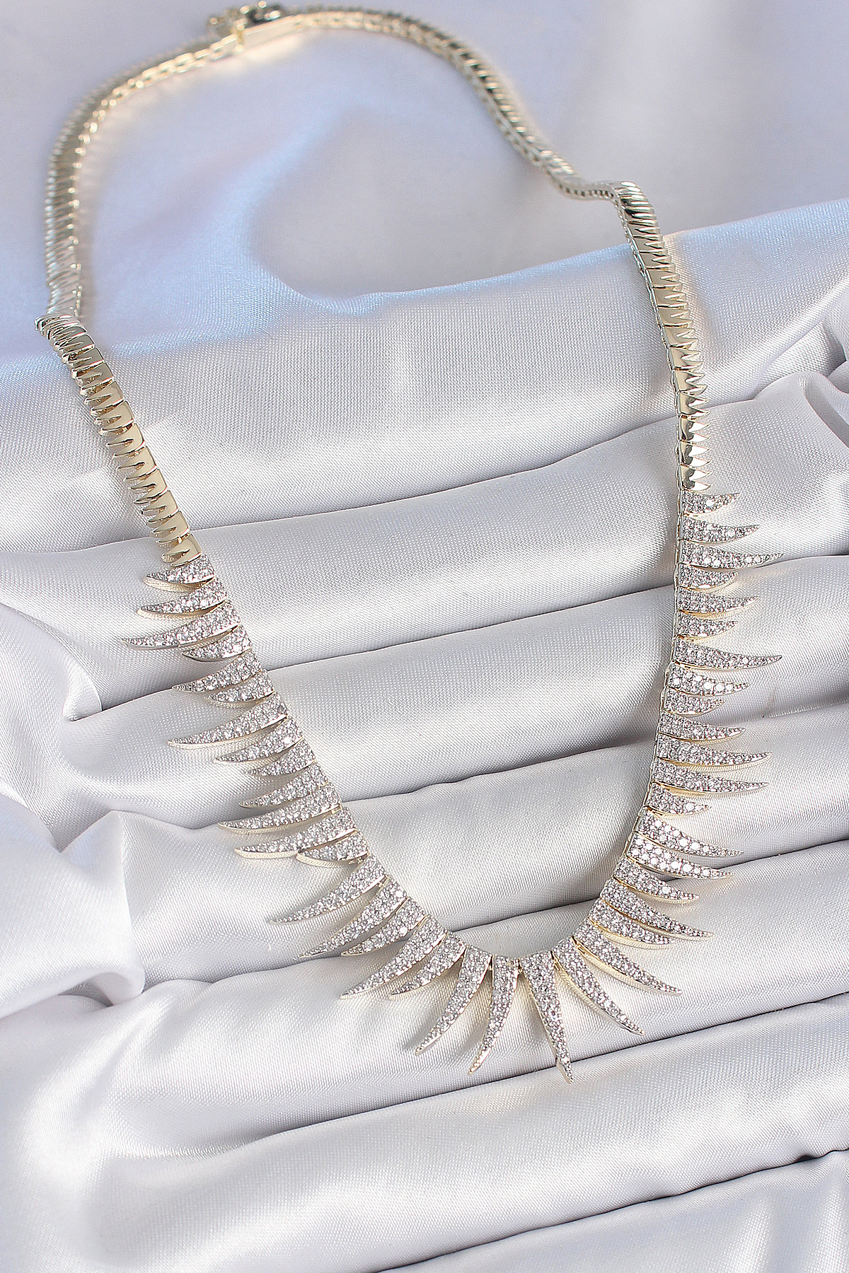 Pirinç Gold Renk Zirkon Taşlı Sivri Model VIP Seri Kadın Kolye