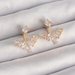 Pirinç Gold Renk Zirkon Taşlı V Model Küpe