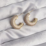 Pirinç Gold Renk Zirkon Taşlı Yarım Halka Küpe