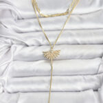 Pirinç Gold Renk Zirkon Taşlı Yelpaze Model Detaylı 3’lü Kombin Y Kadın Kolye