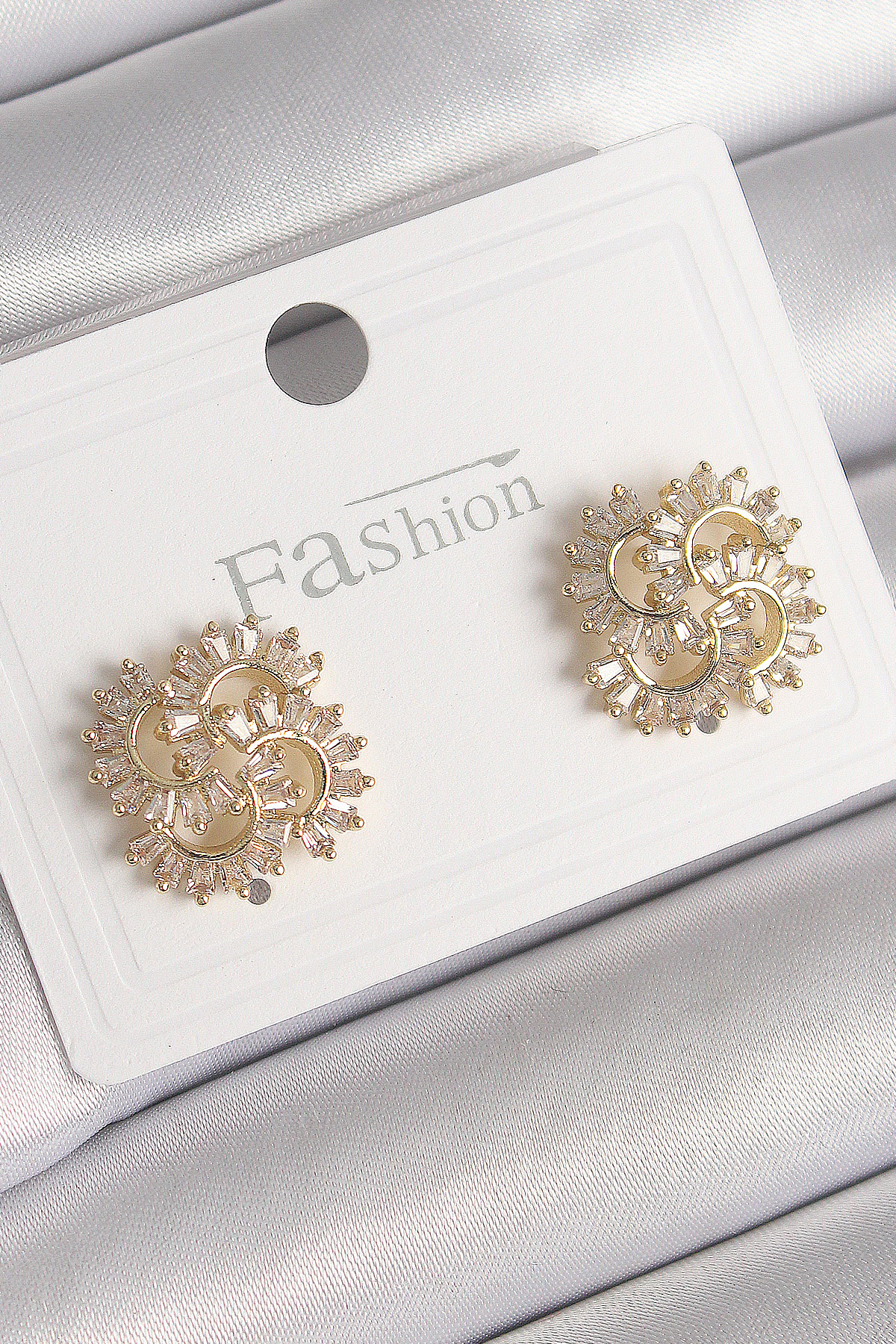 Pirinç Gold Renk Zirkon Taşlı Yonca Model Kadın Küpe