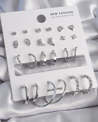 Pirinç Gümüş Renk 12 Çift Kadın Küpe Seti