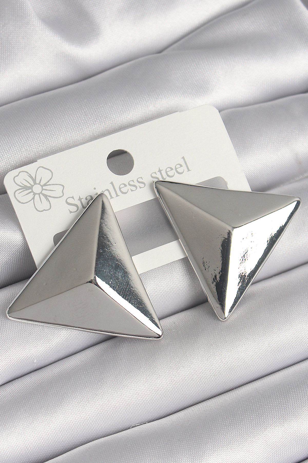 Pirinç Gümüş Renk 3D Üçgen Model Kadın Küpe
